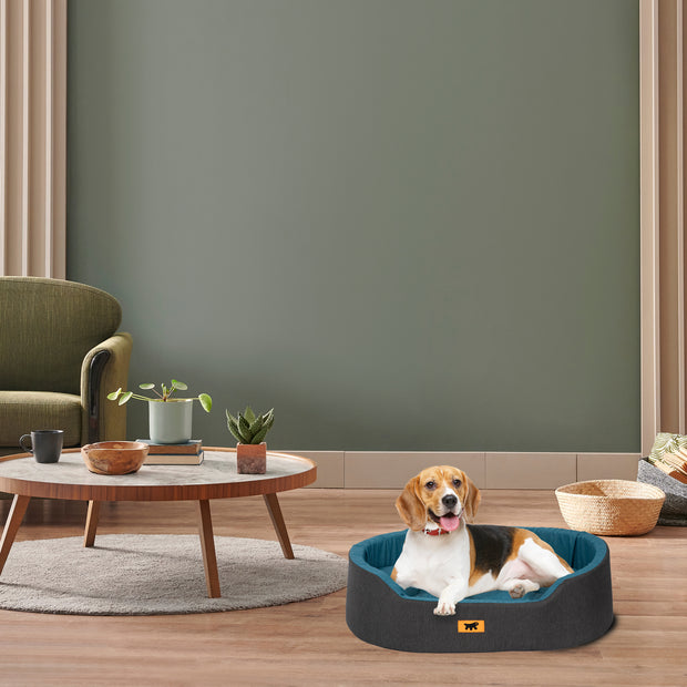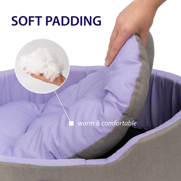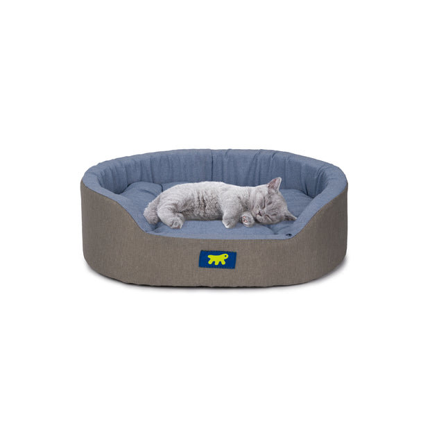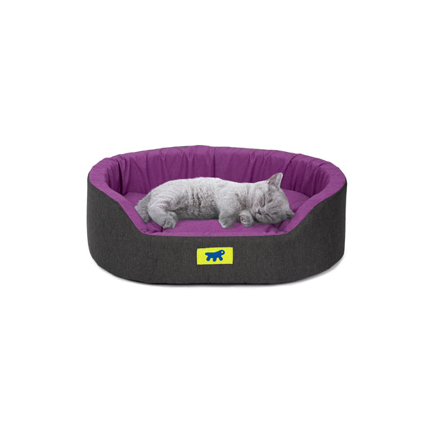 Dandy, the bed for dogs and cats, is conveniently oval-shaped, with high sides, soft internal padding and a comfy double-sided cushion. The entrance, at the front, is lowered, to allow your pet easy access. The bed is entirely covered in pure cotton fabric and is featured here with cheerful colour combinations. Dandy is hand washable at temperatures of maximum 30°C.