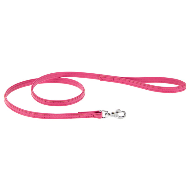Vogue dog leashes are made of genuine leather, equipped with a practical handle and metal hook. They are available in cheerful colours such as yellow, pink and red, as well as in traditional brown and black shades. You can find them in two sizes with a length of 120 cm and a tape width of 15 or 20 mm.