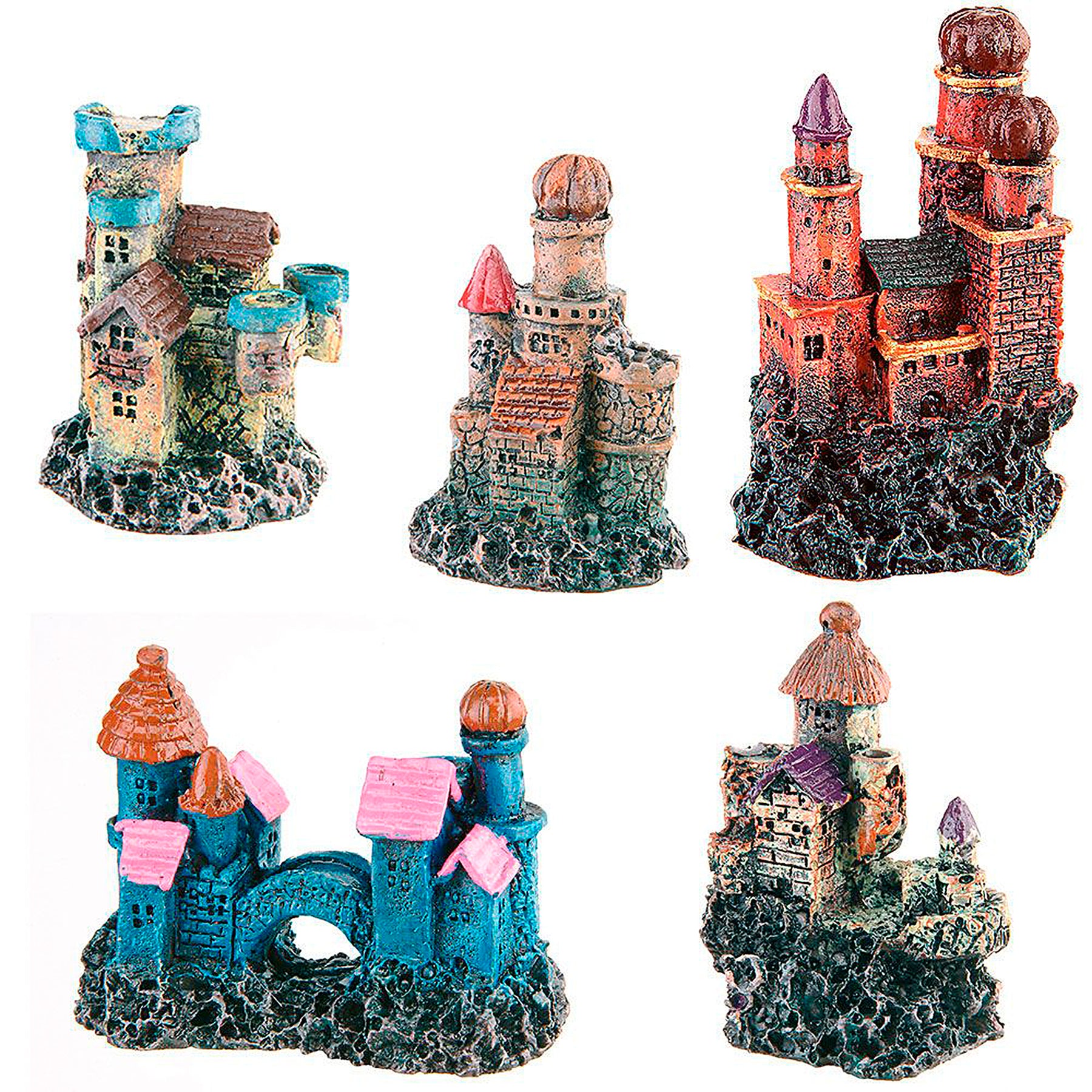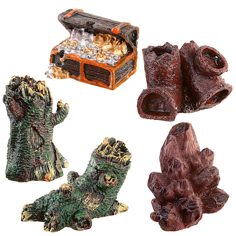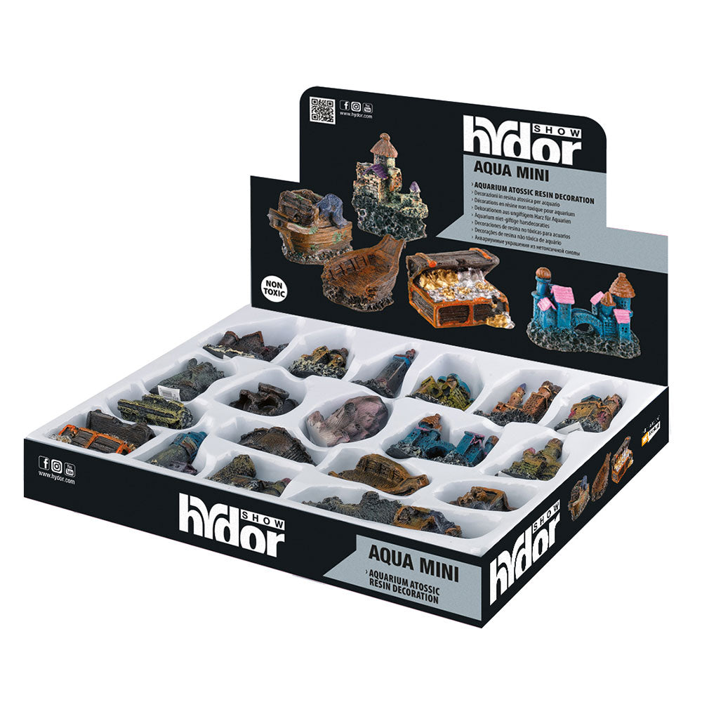 This accessory to decorate your aquarium. BLU 9180 includes some resin decorations like buildings, bridges, boats and even a treasure ches. ll manufactured with great care to details, some with coloured details, these very small aquarium decorations can be placed inside small fish tanks.