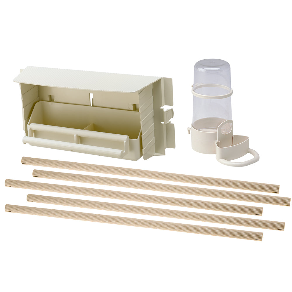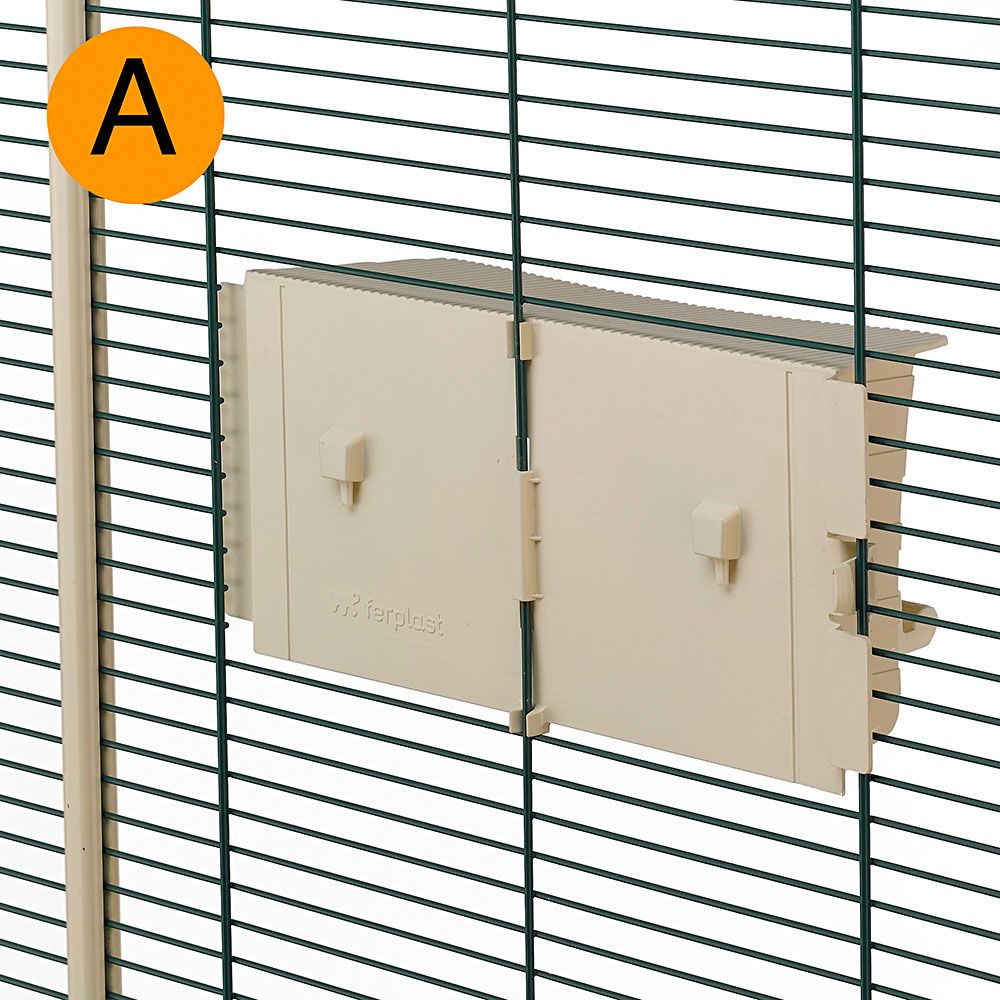 • Accessories included: 1 swivel feeder Brava 6, 1 drinking bottle and 5 perches