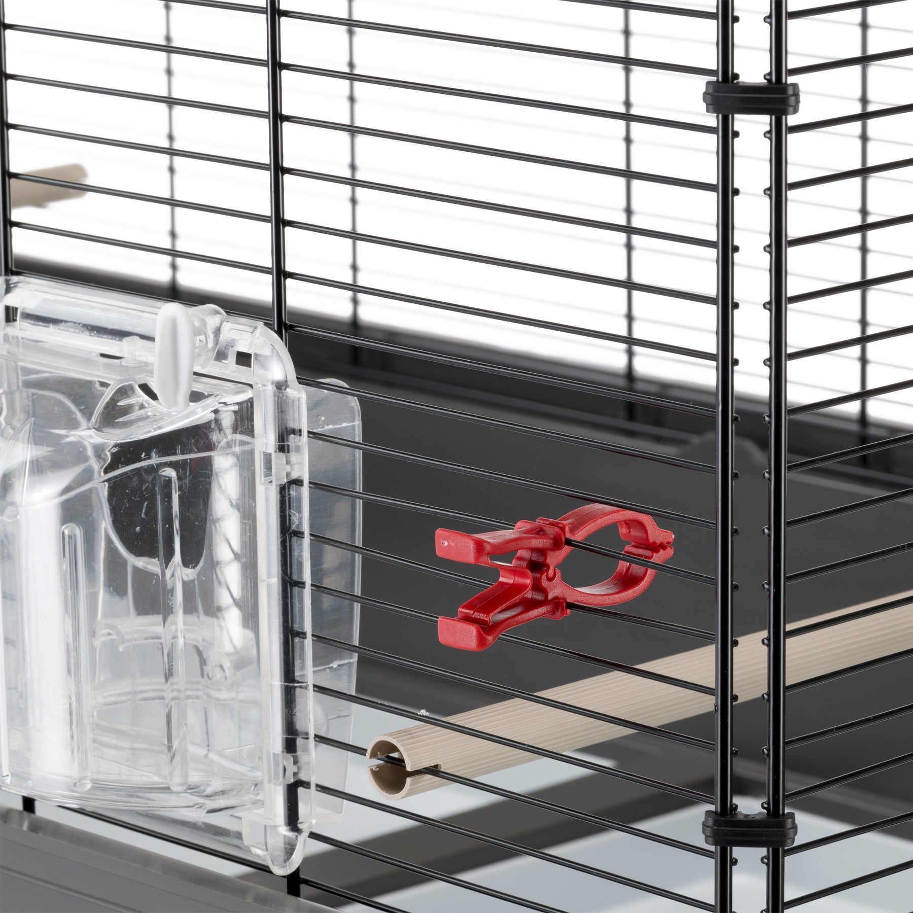 Inside the package, you will find the special Brava 2 removable feeders. These practical feeders were designed to be rotated 180° and can therefore be filled from the outside, without having to open the cage, thus avoiding the risk of your little bird escaping. Made of sturdy clear plastic, they have useful edges that prevent food from falling out of the cage.