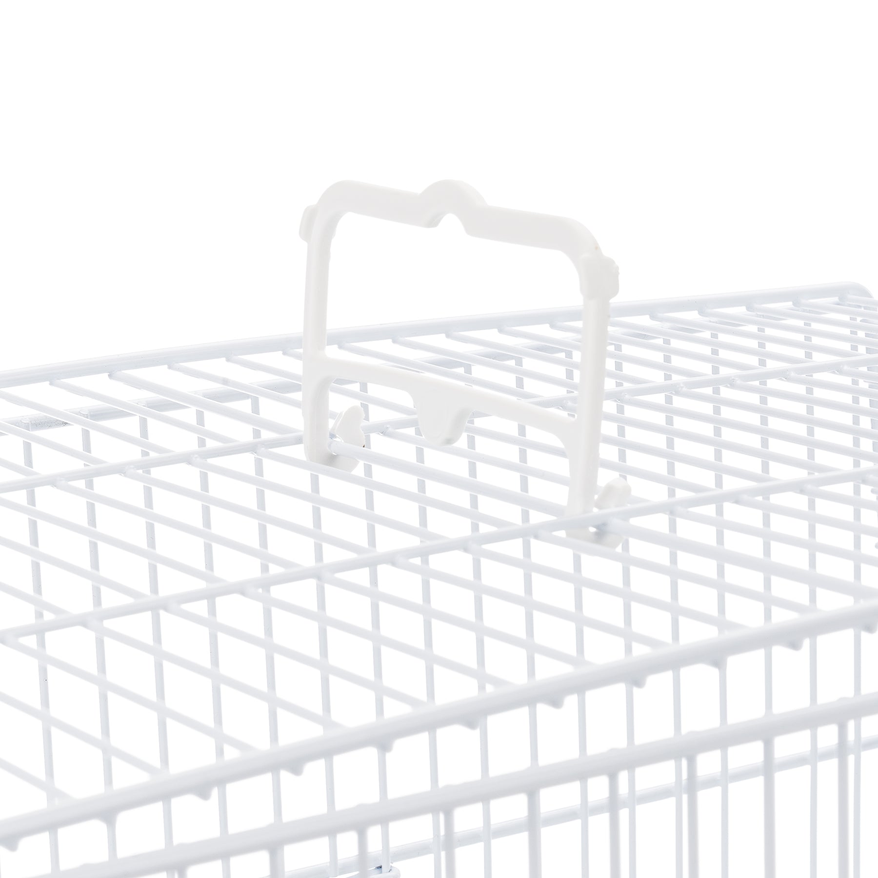 Rekord 1 is a rectangular cage for canaries, exotic birds and other small birds. It has carrying handle and is made of wire mesh that has been varnished white, with a sturdy plastic base. Rekord 1 comes complete with essential accessories, including plastic drinking bottle and perches and Brava 1 extractable swivel feeders. Cleaning is quick and easy, thanks to a removable dirt-collecting tray.
