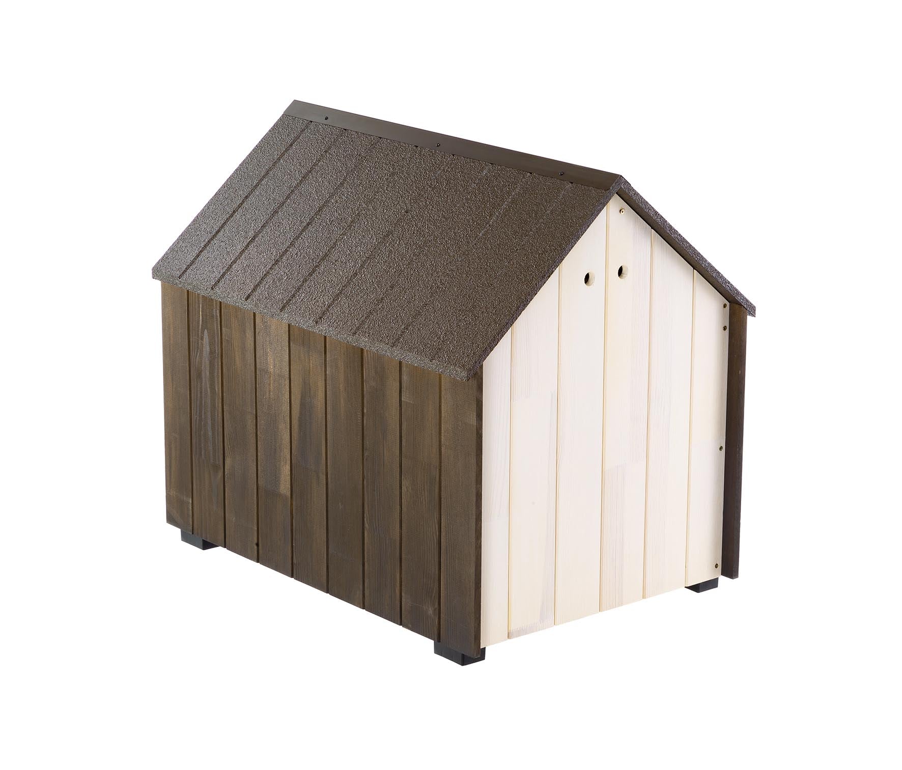 The Koya dog kennel by Ferplast has a unique design and a cosy and graceful style, features of all Ferplast products, with a few more tricks: the kennel has an original combination of light and dark wood, while its shape has been stylised to make it more modern. Entirely made of resistant wood, FSC™ certified, that is sourced from forests that are managed correctly and responsibly according to strict environmental, social and economic standards and other controlled sources, the kennel Koya ensures good thermal insulation and weather resistance: it is therefore the ideal shelter for any season, robust and perfect for outdoor use. Like all Ferplast wooden houses, the model Koya is treated both internally and externally with special coating processes to ensure maximum resistance in all weather conditions. The wood is protected by an ecological, non-toxic, anti-mould, UV-resistant and water-repellent varnish, applied using flow-coating technology. The special construction with a sloping roof allows rainwater to drain off correctly.