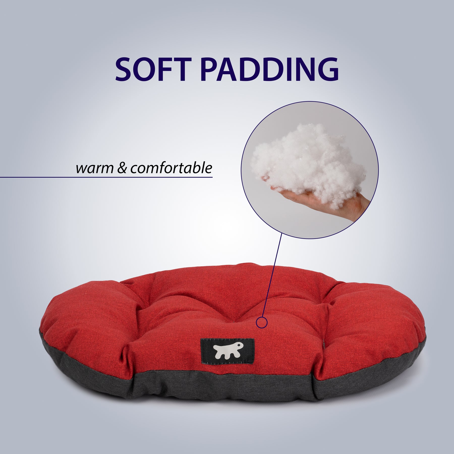 Relax is an oval-shaped cotton cushion for dogs and cats. It fits easily into the rigid plastic dog beds in the Siesta Deluxe range: the number after the bar refers to the Siesta Deluxe bed size to which the cushion can be combined. For example, the cushion Relax 55/4 can be used in combination with Siesta Deluxe 4.
