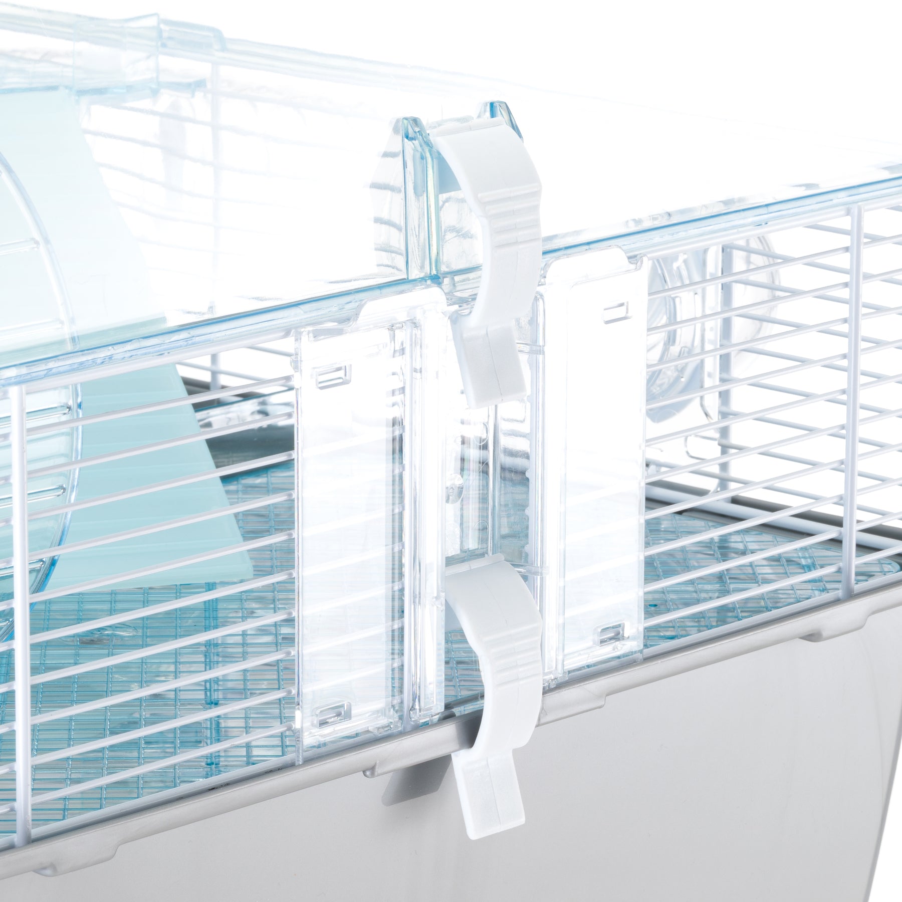 Very similar in construction to Duna Fun Large but much smaller, Duna Fun is a hamster cage, divided into three levels and equipped with every comfort. Inside, you will find a little nest for rodents, ladders, a drinking bottle, a wheel and transparent tubes, essential accessories for making sure your little friend has fun.