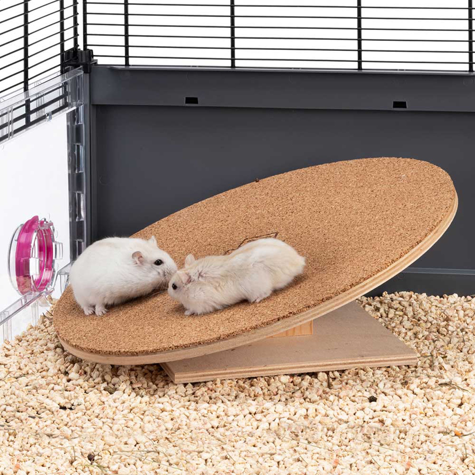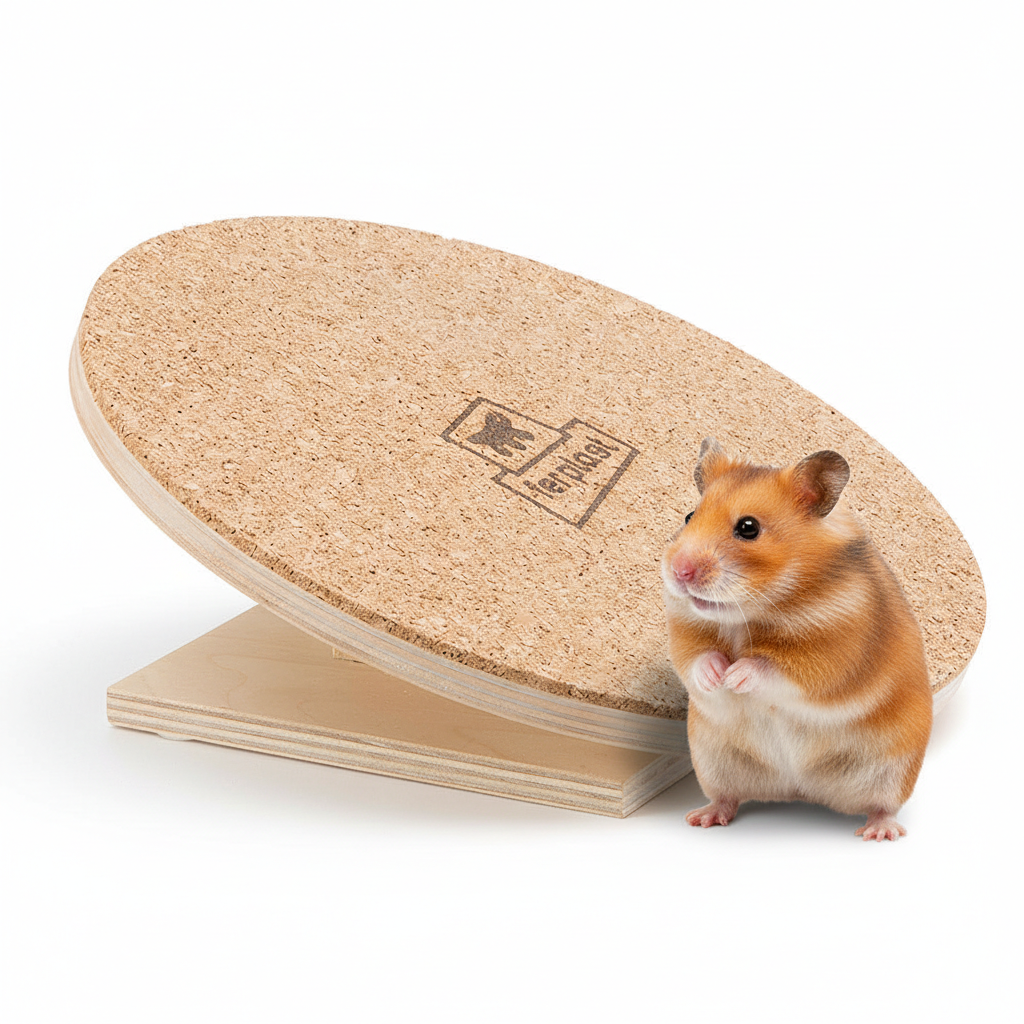 This rodent wheel is essential to keep your friend active and in perfect health. It is a wooden exercise disc with an anti-slip cork surface that ensures a good grip while running. High quality natural material is safe for your pet and non-toxic. The wheel rests on a large base to ensure good stability. Included you will find 4 anti-slip caps. Easy to assemble. Available in different sizes to choose according to your needs or the size of your rodent: small model (20 cm diameter) suitable for hamsters and mice, large model (30 cm diameter) for chinchillas and mice.