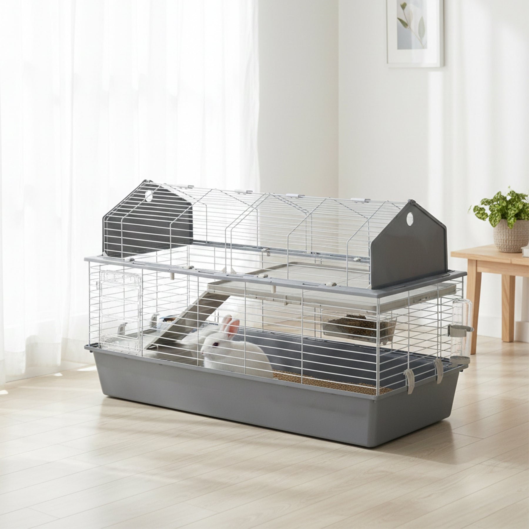 - A convenient ramp connects the rabbit house to the upper floor