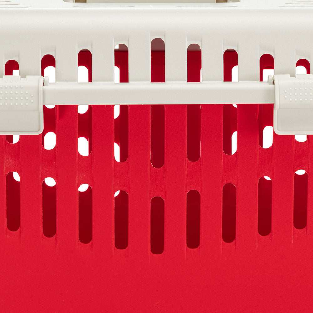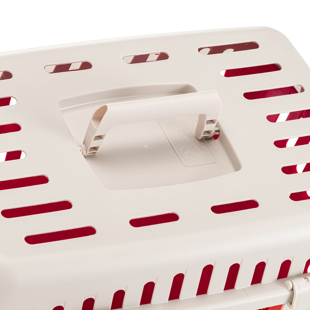 Sturdy but light at the same time, the Binny pet carrier can be useful on many occasions. The large ventilation grilles on the roof and on the side walls have been designed for optimal ventilation, ensuring a comfortable journey for your pet. The upper part is equipped with a safety lock to prevent accidental opening during the journey. A comfortable handle facilitates movement.