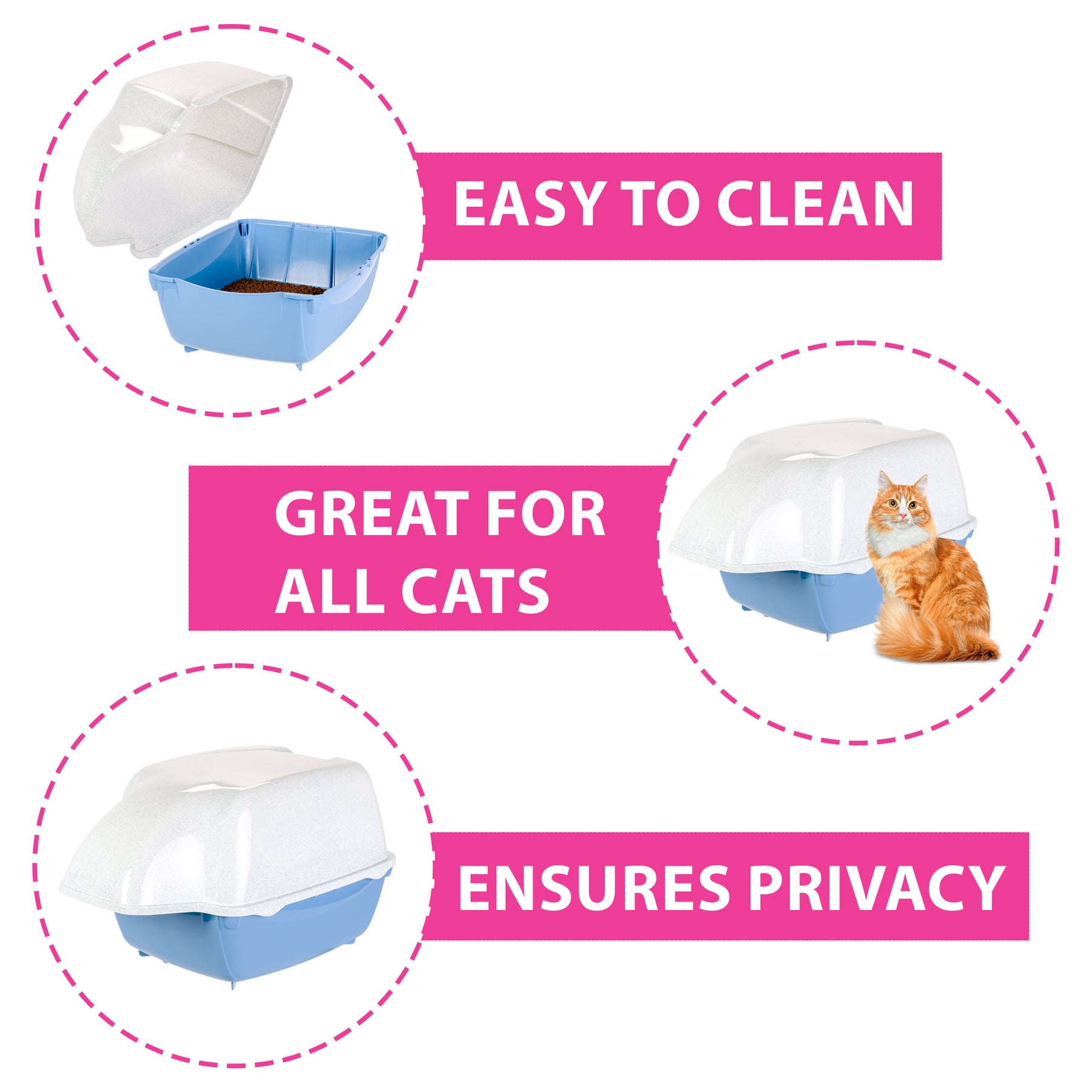 - Ensures your cat’s comfort, privacy and cleanliness