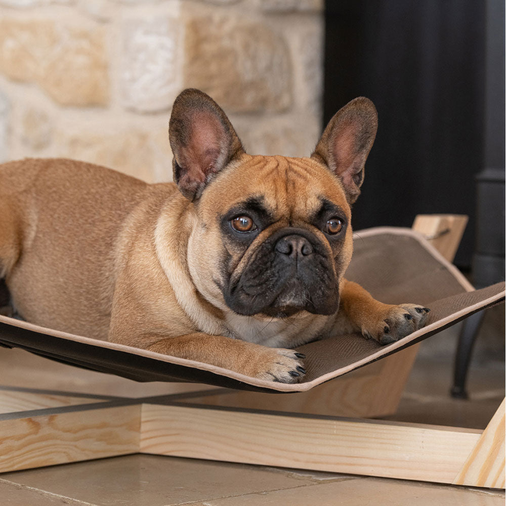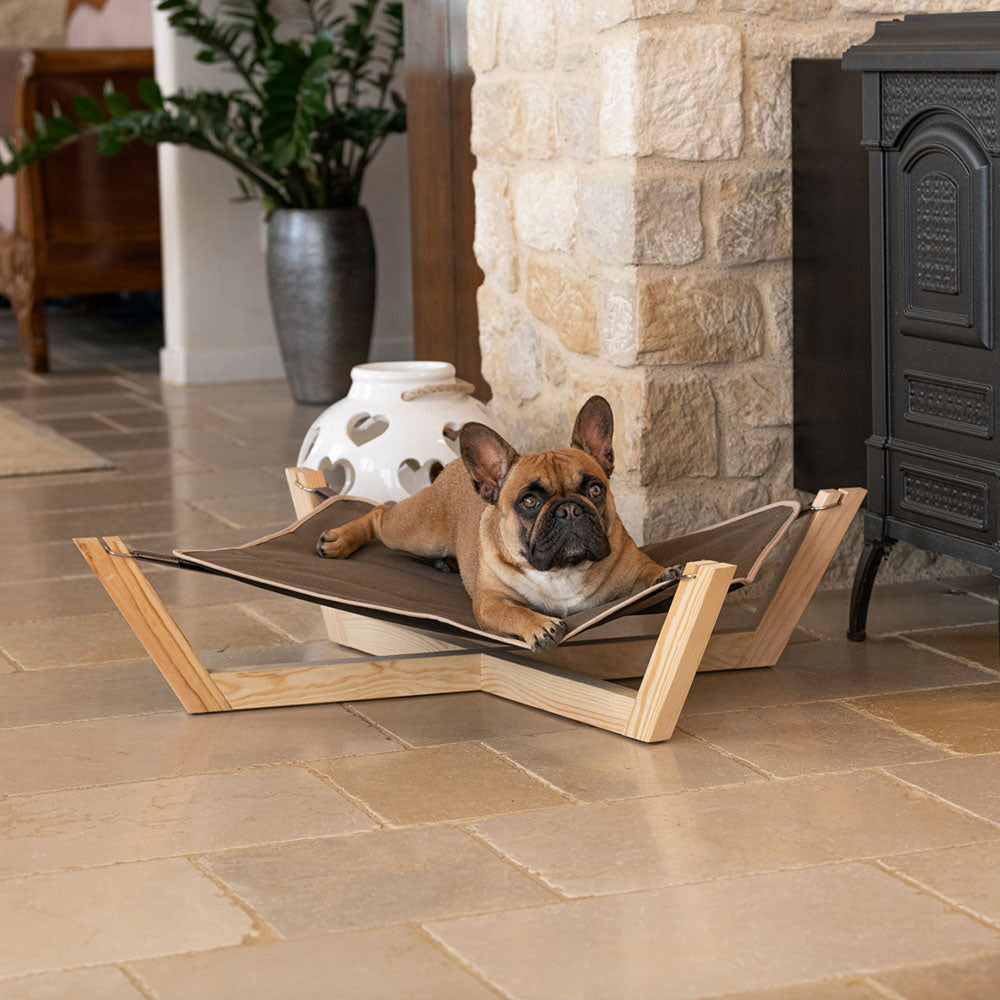 FSC™ certified wooden hammock for dogs complete with fabric cloth