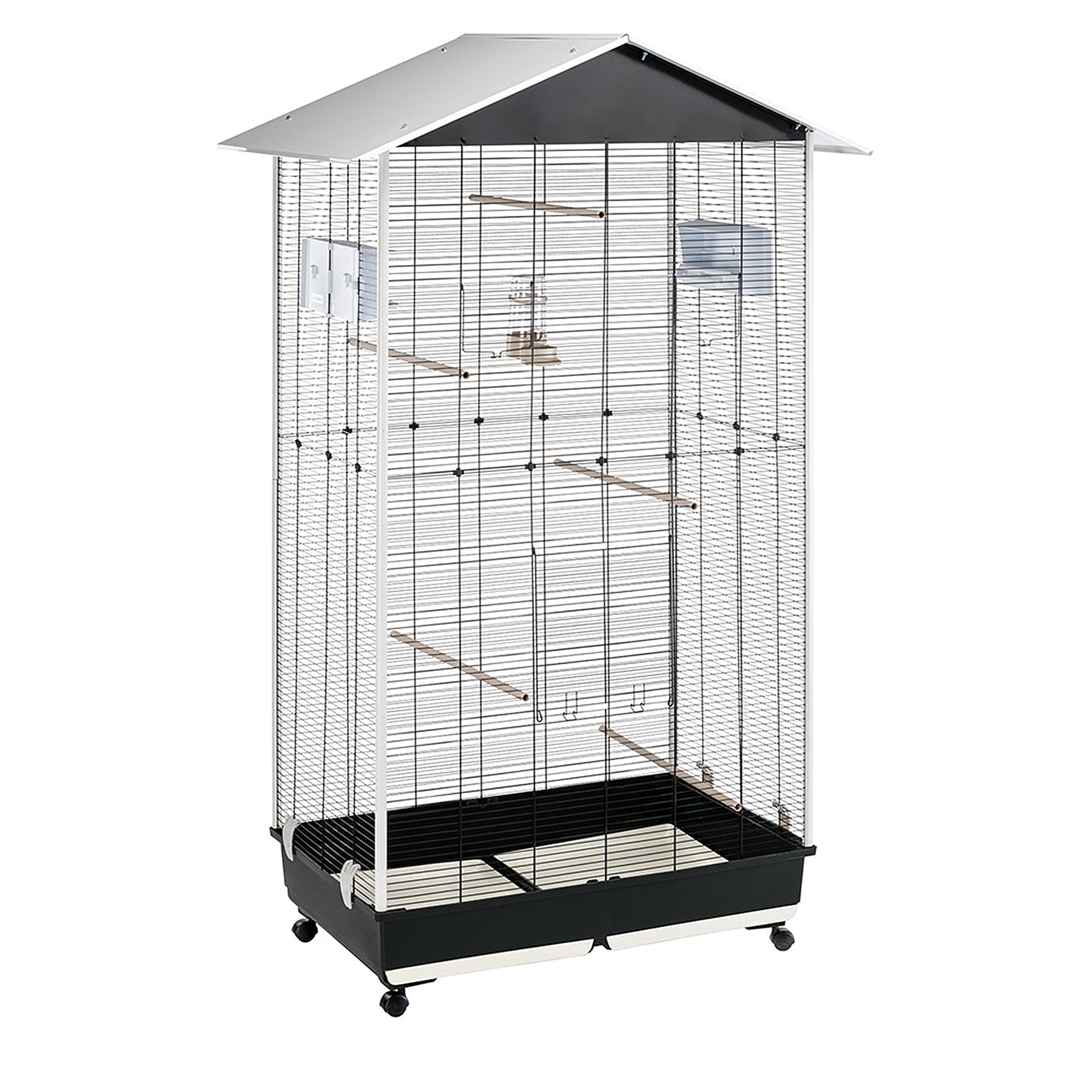 Easy to maintain, the aviary is equipped with a plastic bottom with removable dirt-collecting trays; if necessary, the bottom can also be completely detached for more thorough cleaning.