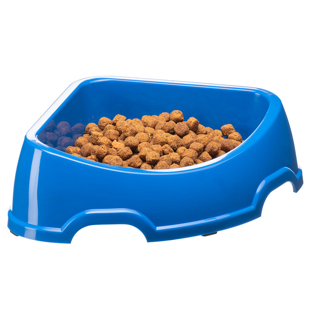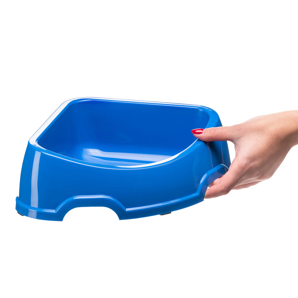 Made of colored plastic, the Party dog and cat bowls are practical and easy to handle, equipped with side handles that allow a secure grip when moving. Furthermore, Party are equipped with a non-slip rubber edge for maximum stability. Ideal for both food and water, they are available in different sizes. Thanks to their particular triangular shape, the Party 20 and 22 corner bowls can also be positioned in corners, thus taking up less space.
