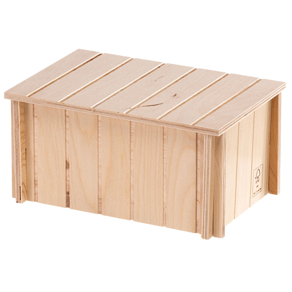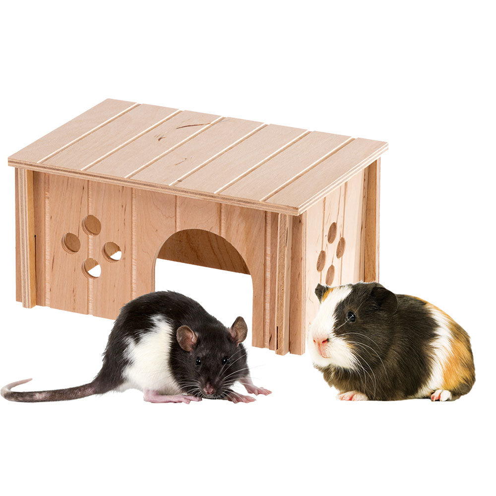 SIN 4645 is a wooden house that, due to their small sizes, are perfect for guinea pigs. Designed with a flat roof and front entrance, it has a nice shape and it is decorated with graceful holes that also facilitate air circulation. SIN 4645, which is part of the SIN range for small animals, is built with respect for the environment, made using FSC™ certified wood, that is sourced from forests that are managed correctly and responsibly according to strict environmental, social and economic standards and other controlled sources.