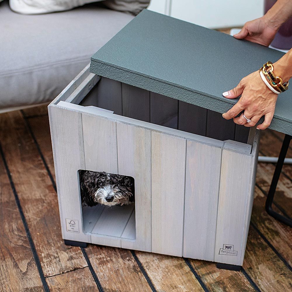 Argo dog house is made of FSC™ certified Northern pinewood, that is sourced from forests that are managed correctly and responsibly according to strict environmental, social and economic standards and other controlled sources. Built to last overtime and ideal for outdoor use, it offers a comfortable shelter to your faithful friend in every season. Moreover, the colour shade chosen for its finishes gives the kennel a modern flavour that will surely meet your preferences.