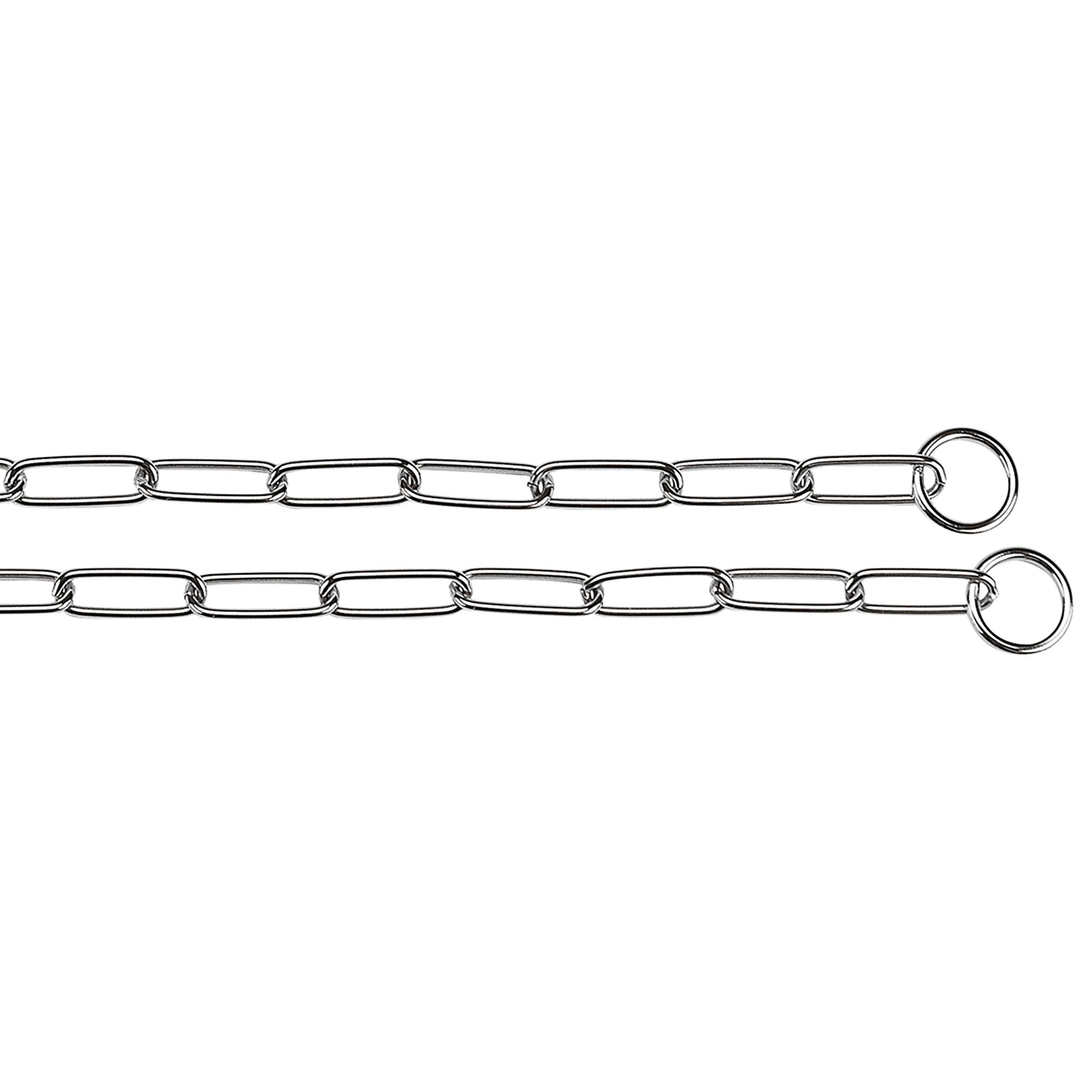 Chrome CSP is a chrome-plated steel choke-chain dog collar. Its metal link rsults very sturdy and hard-wearing with special rings on the final parts useful to fasten your dog lead. The dog collars Chrome CSP are suitable for helping you and train your dog, available in six sizes of length from a minimum of 44 to a maximum of 68 cm.