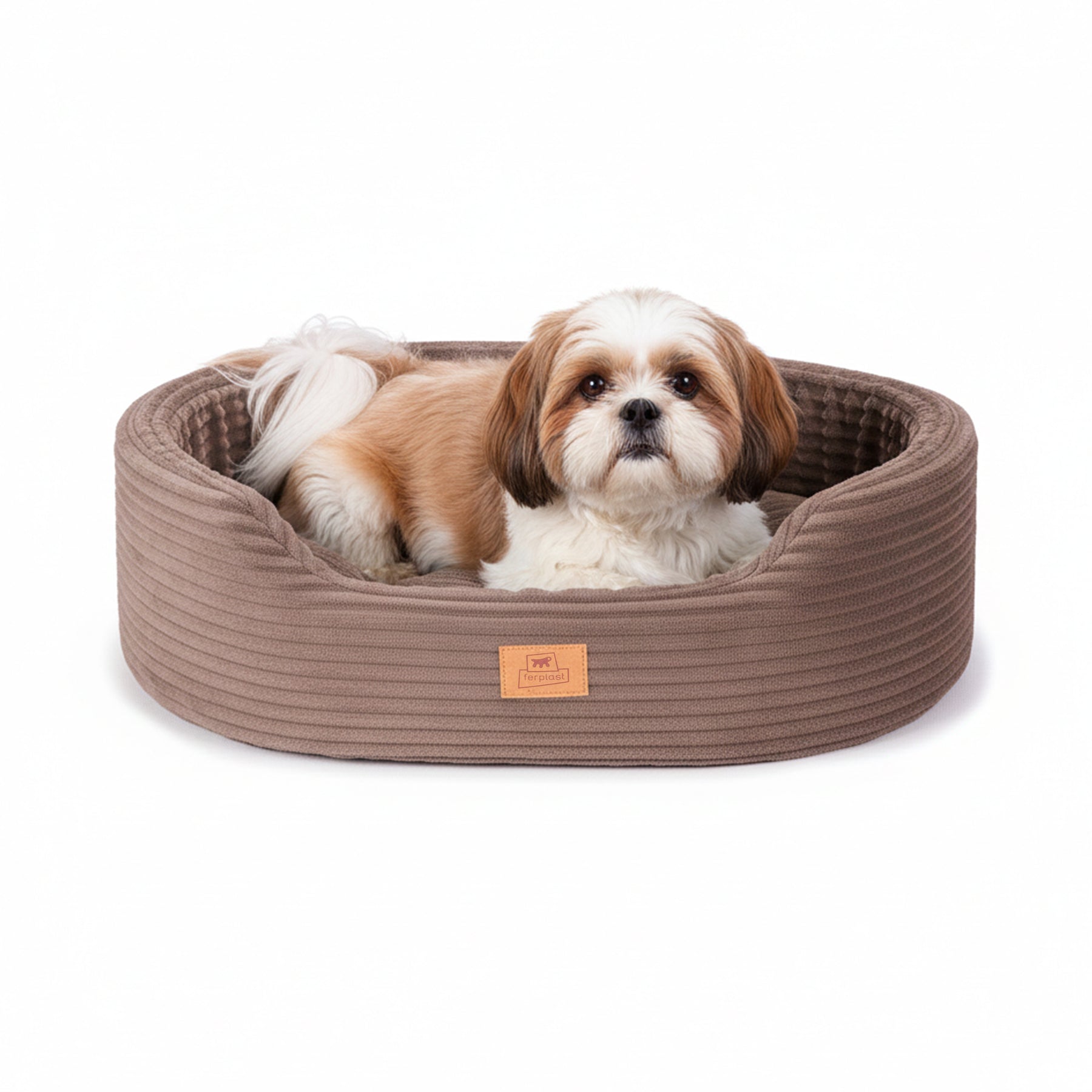 The Corduroy ribbed velvet cover gives the bed a refined, contemporary look, turning it into an elegant indoor pet bed that blends seamlessly with home furnishings. The removable inner cushion, soft and well padded, enhances comfort and allows for easy cleaning and maintenance.