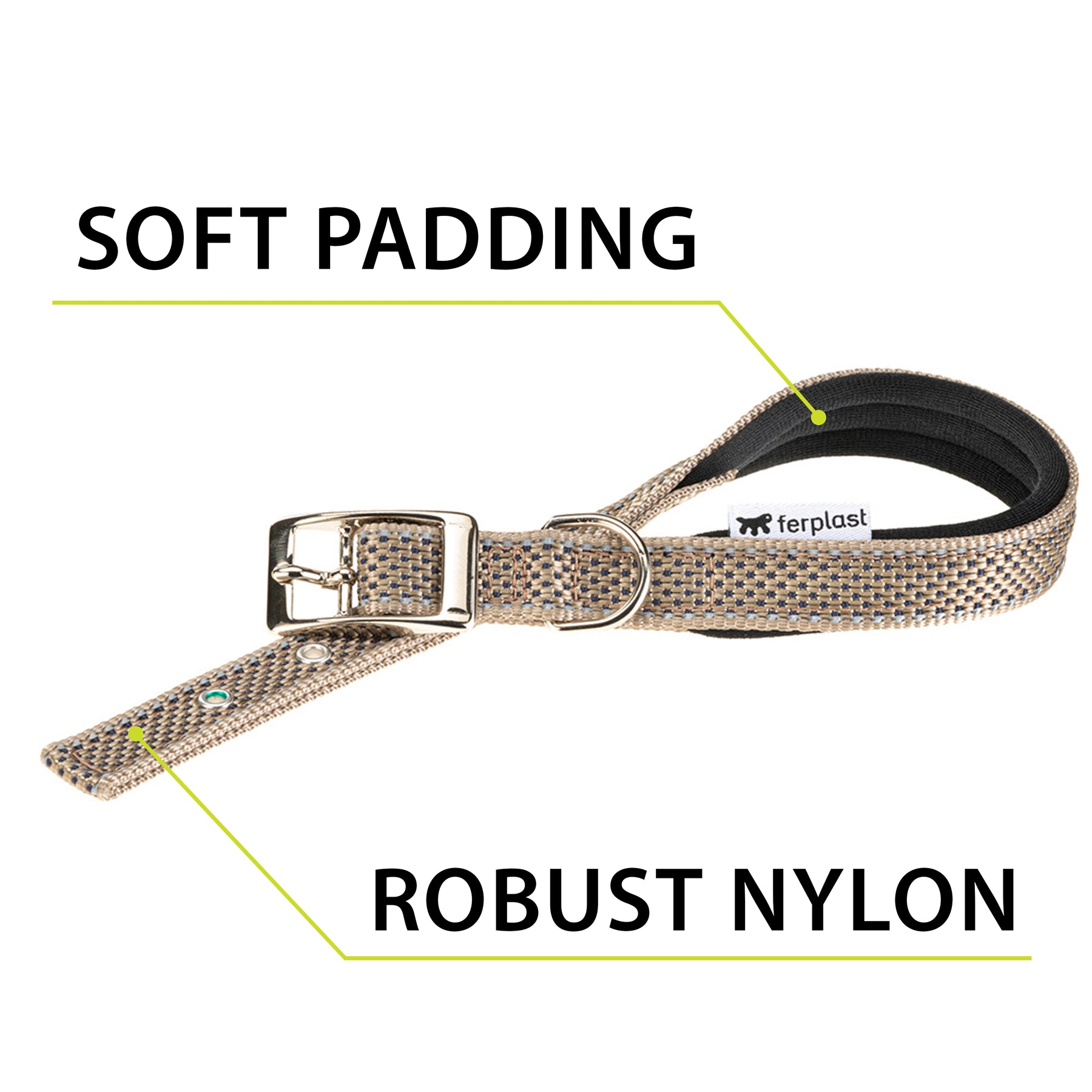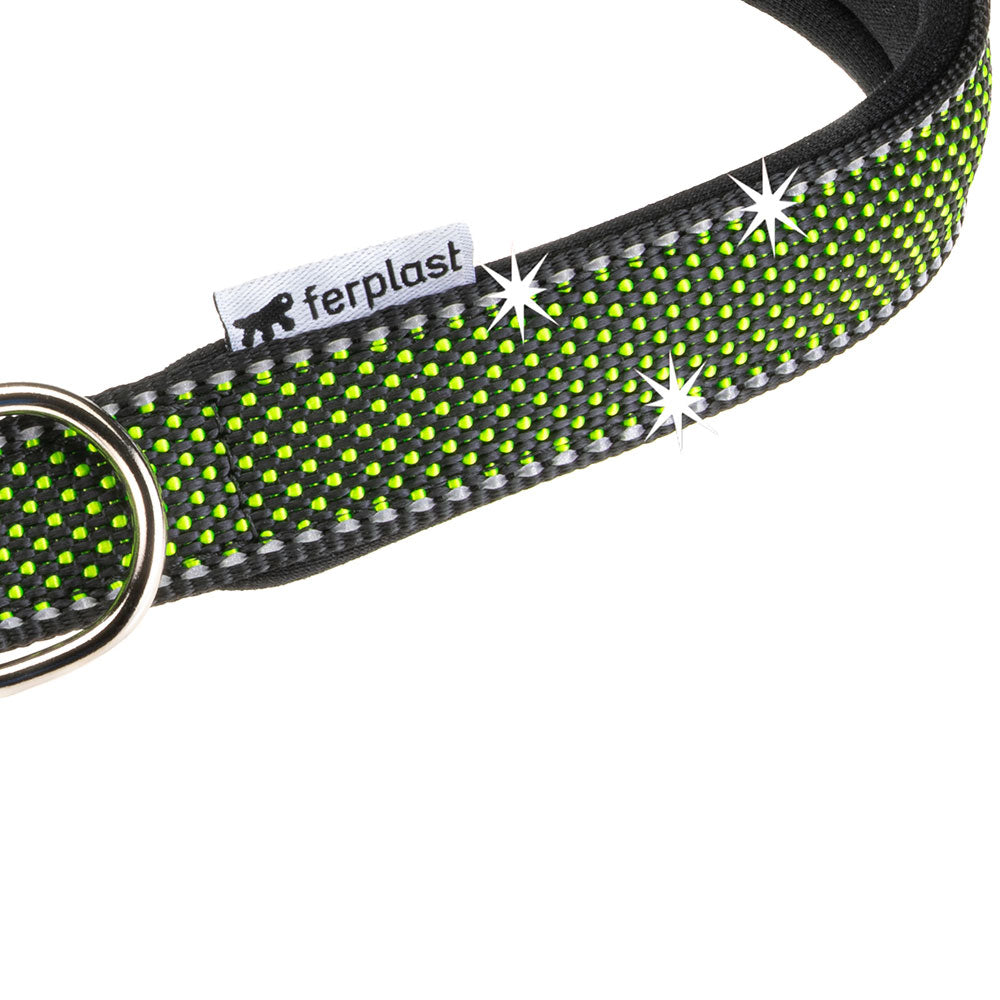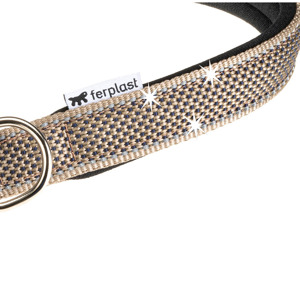 The Daytona Deluxe dog collar is made of sturdy and elegant fabric, featuring a four-hole adjustment system and a refined metal buckle. Thanks to the soft padding of the internal webbing, it is particularly comfortable in contact with your friend's neck. In addition, it is equipped with reflective seams that allow it to be visible even in low light conditions, and therefore ideal for evening walks with Fido.