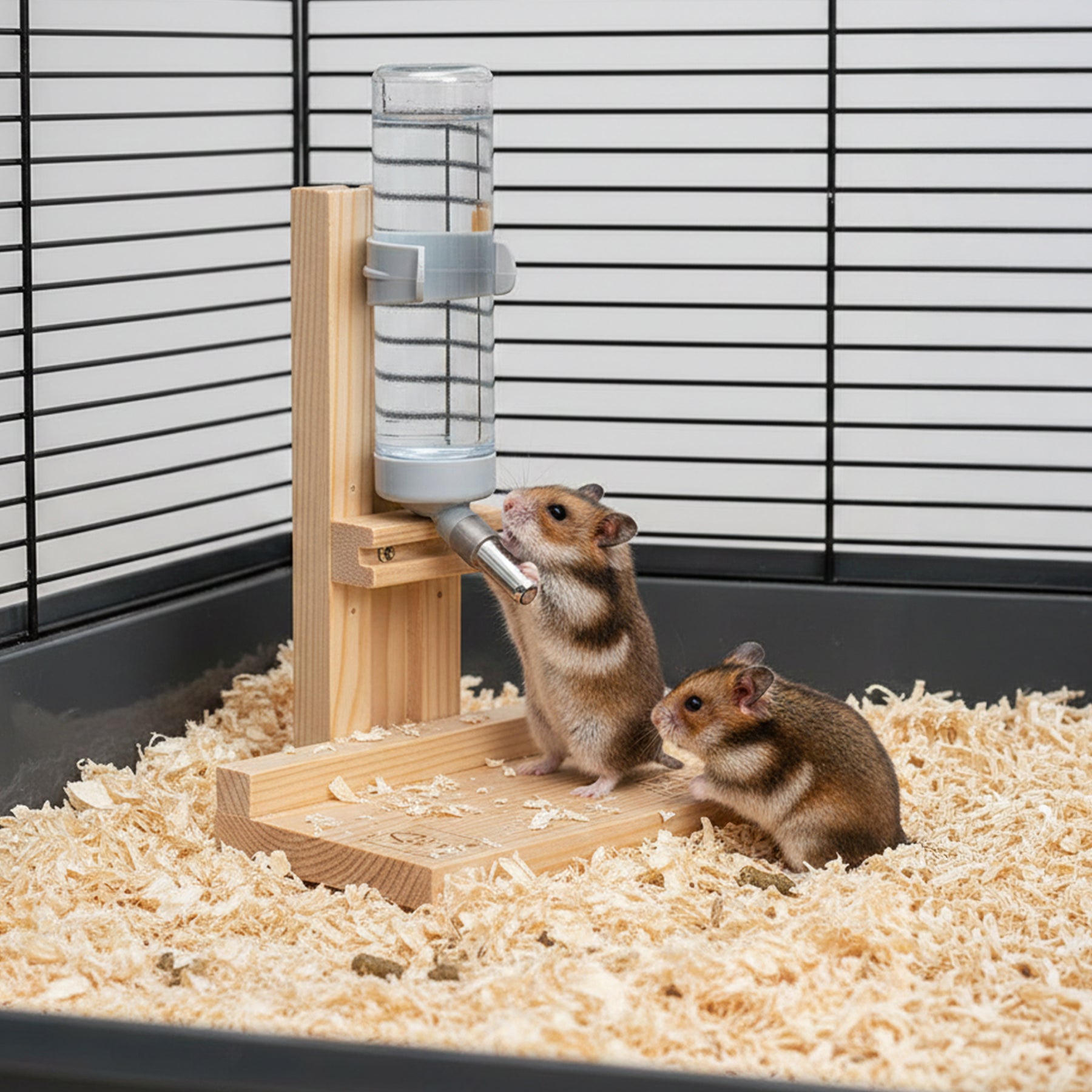 This wooden drinker holder, especially ideal for the Drinky series, has a solid support base and can be placed inside your pet's habitat in the most suitable and comfortable position to reach. It allows you to fix the drinking bottle using a special plastic hook, adjustable in height, and thus ensure water is always available for the little guest.
