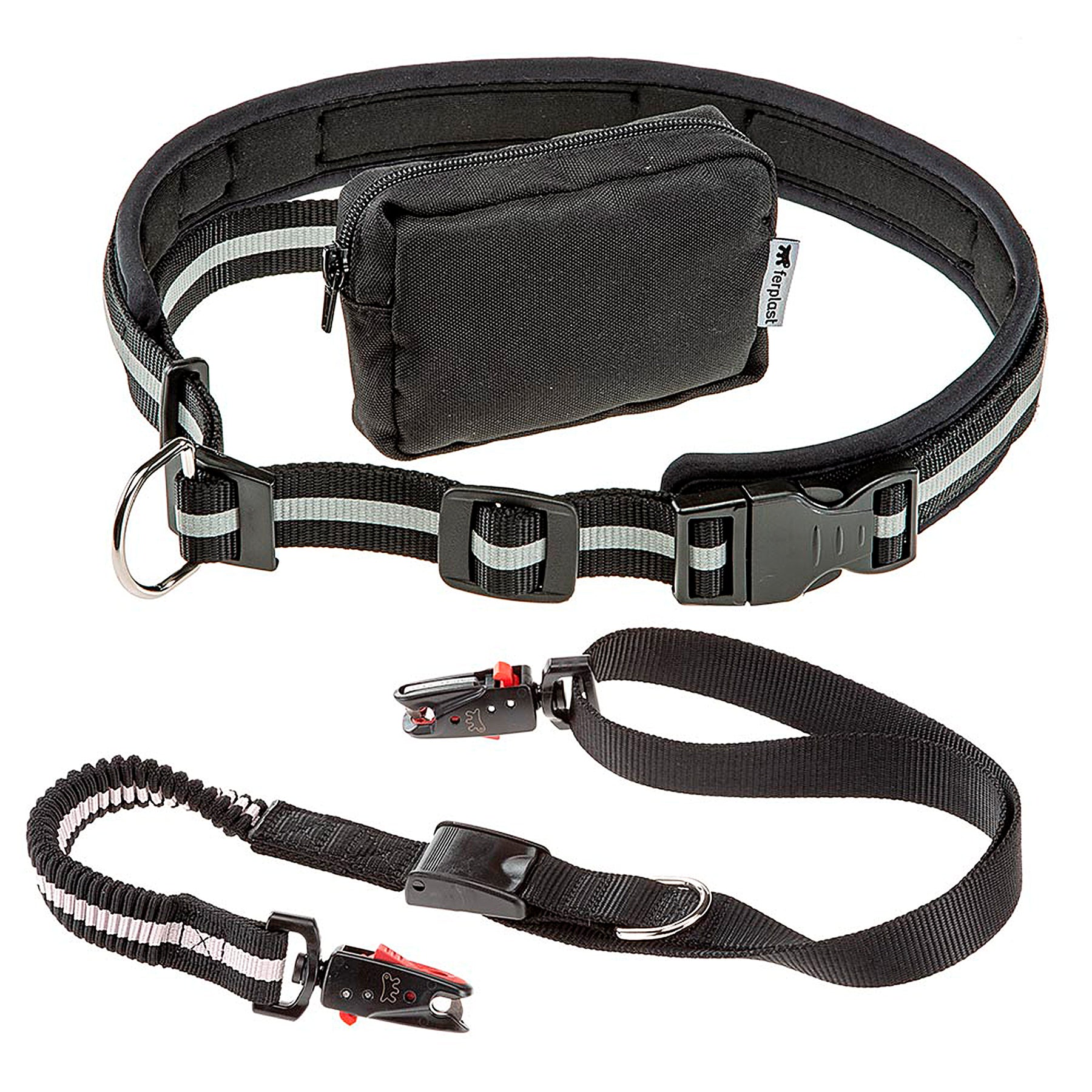 - Composed of 3 pieces: belt, pocket bag and elastic leash for dogs