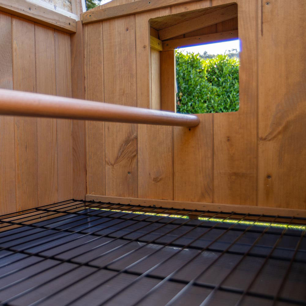 • Sliding door for the animal's entrance and exit through a wooden ladder