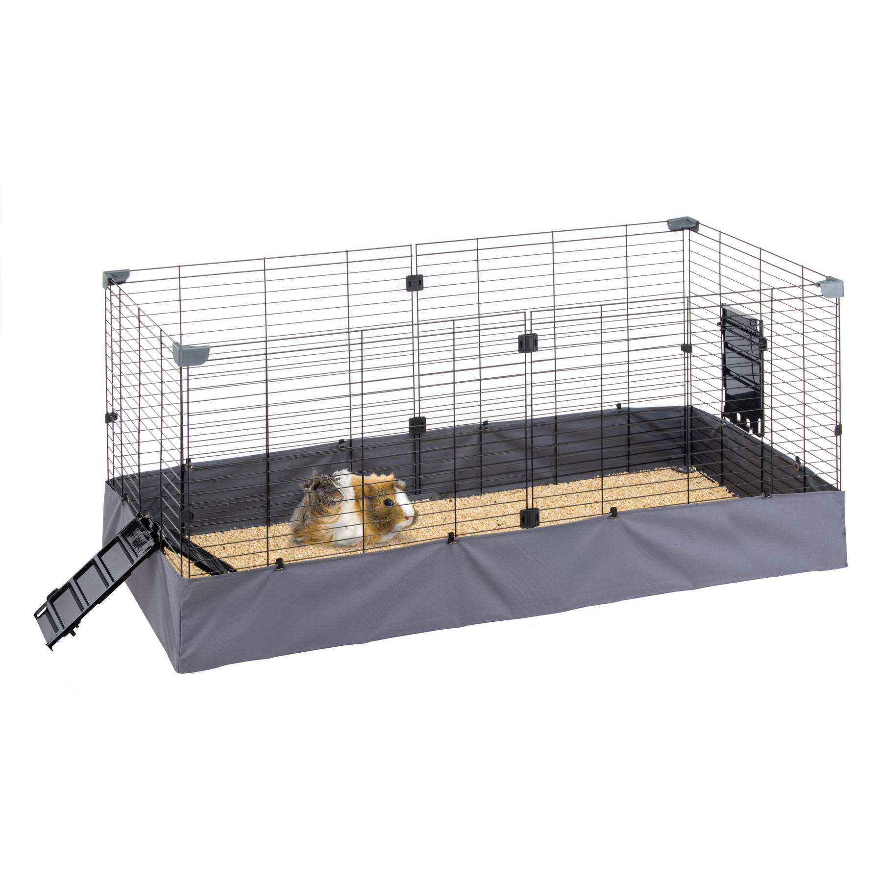 The Hub guinea pig enclosure is designed to be easy to assemble, with no special tools required. When not in use, the habitat takes up little space, making it extremely practical to store. The cage comes complete with accessories, including two plastic doors that double as ladders to allow the guinea pig to enter and exit easily. In addition, an extra hinged door can be used to create a practical bridge.