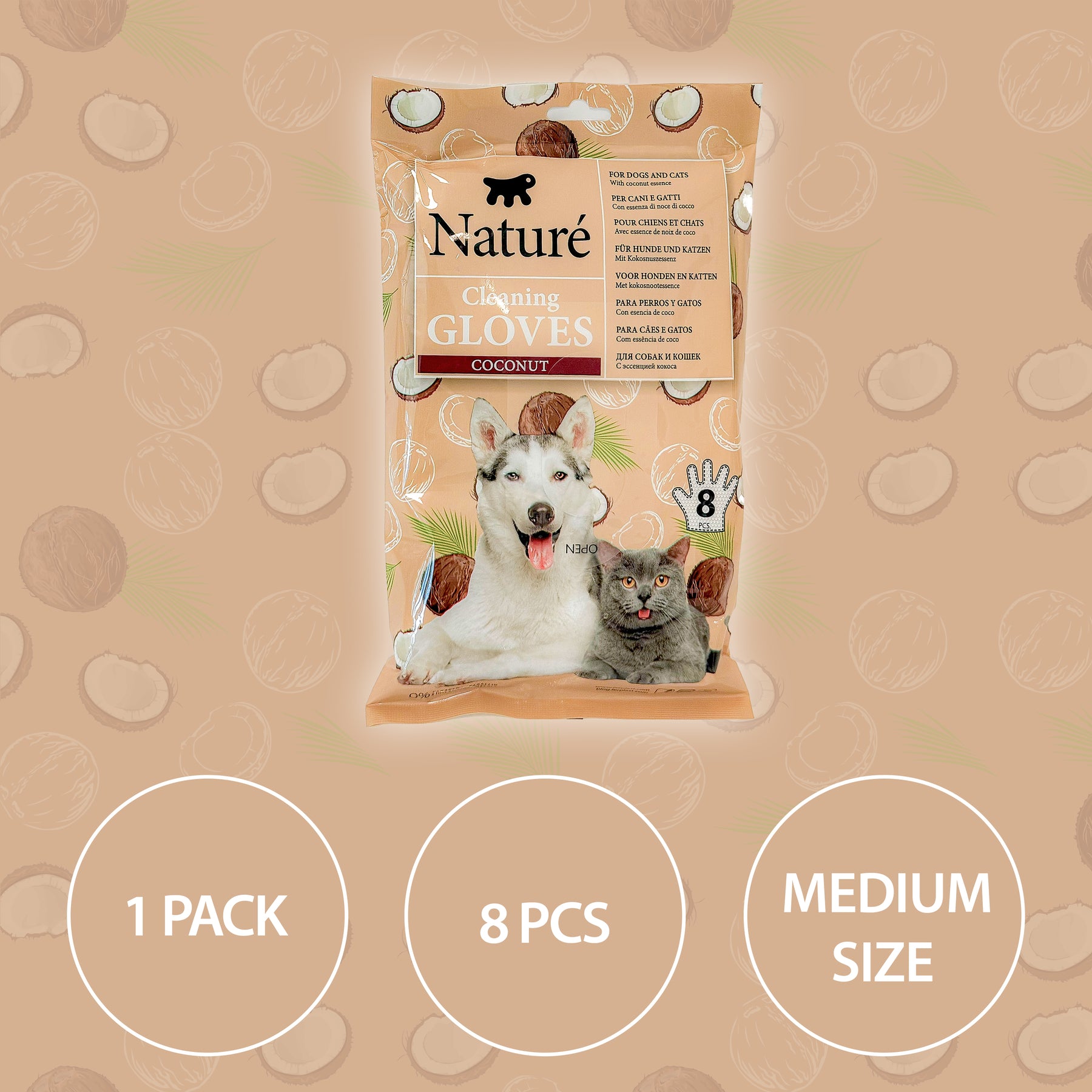 Naturé Coconut cleansing gloves for dogs and cats are a practical and versatile solution for daily coat cleaning, ideal also when away from home. These cleansing wet gloves for dogs and cats allow you to take care of your pet’s hygiene in a simple, quick and gentle way, without the need for water or rinsing.