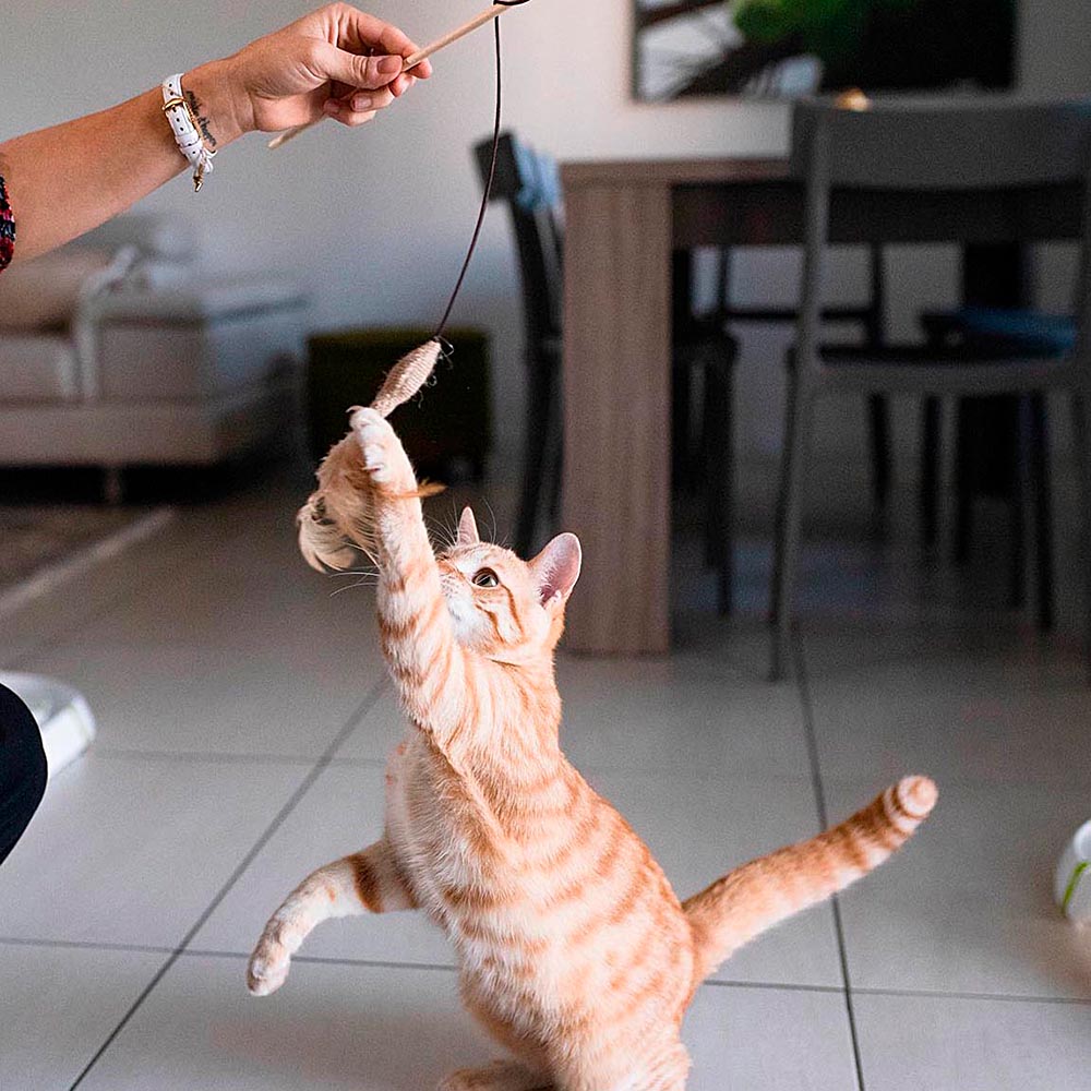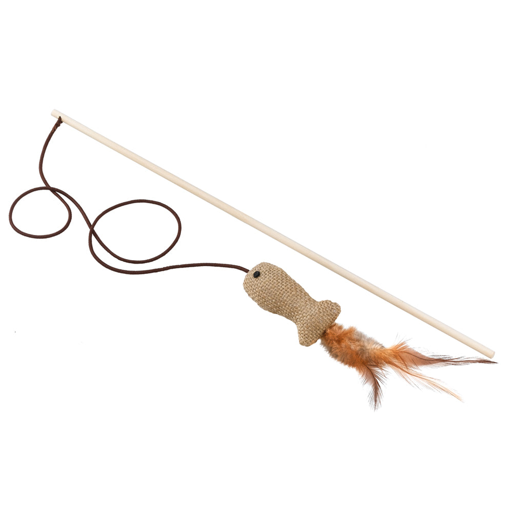 Cats, as known, are very playful pets who love spending their time and escape from boredom scratching, jumping or running after objects. With the shape of a fishing pole, among the last proposals by Ferplast concerning cat accessories, this is a good pastime which will undoubtedly stimulate your feline friend's interest. Made of wood, this cat toy has a funny pendant, made of cord and synthetic plumes, you could wave to make you cat jump. Very nice, proposed in some natural colours like white or brown, it will become your pets' favourite pastime.