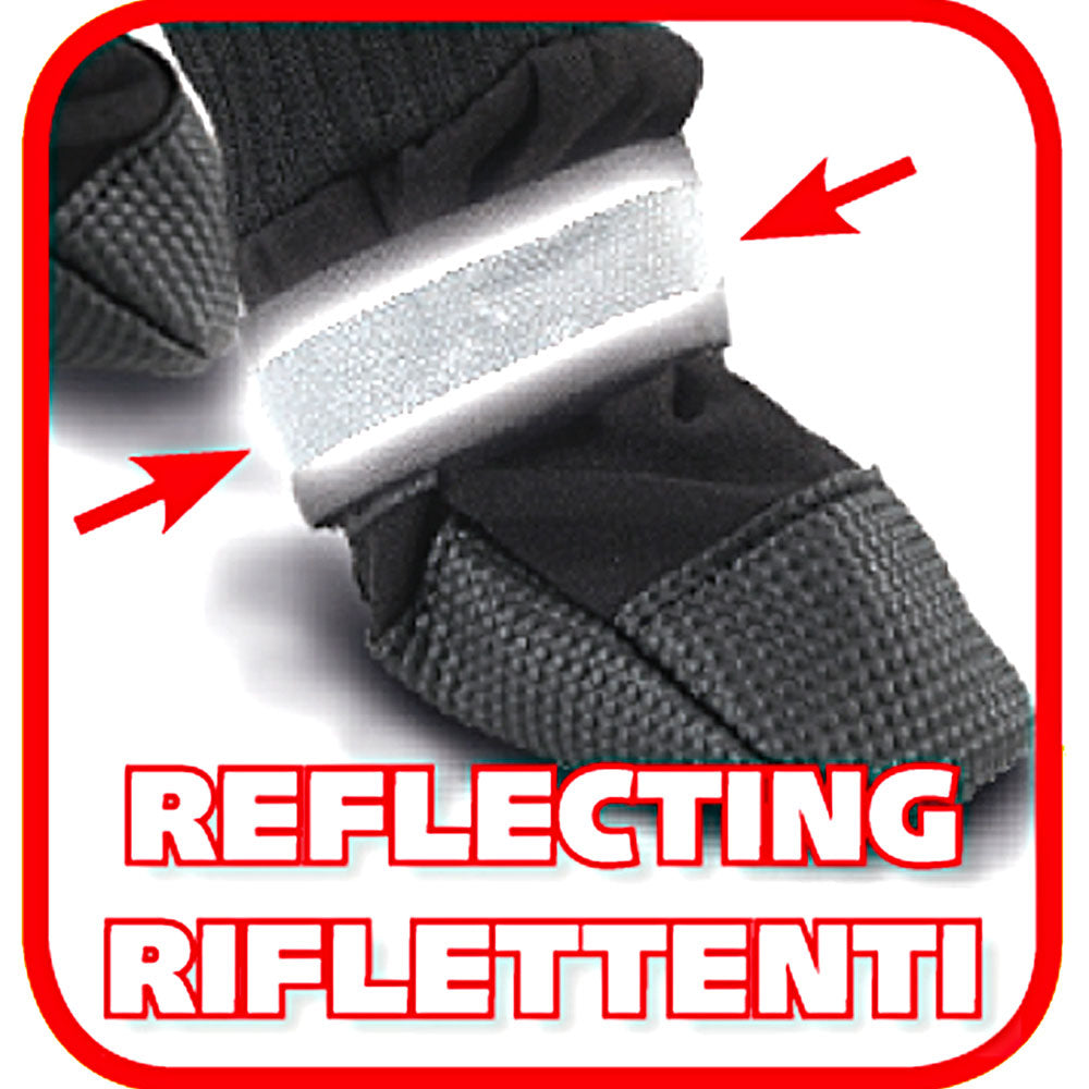 Protective booties useful for guarding your dog's paws in case of injury, or when there is snow or ice. Made of water-repellent, padded neoprene, they are anti-slip and have Velcro fastening. Washable, they are available in five different sizes suitable to all animals. Package of 2 pieces.