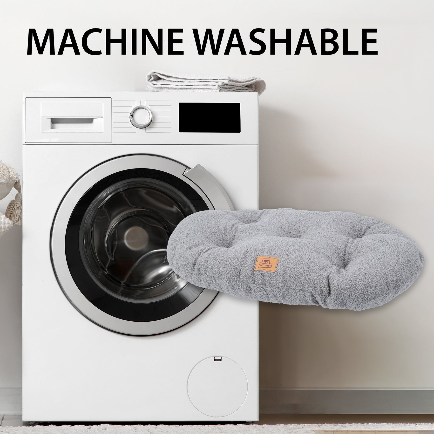 Cushion for dogs and cats in soft faux-bouclé fabric, elegant and cozy, with internal padding