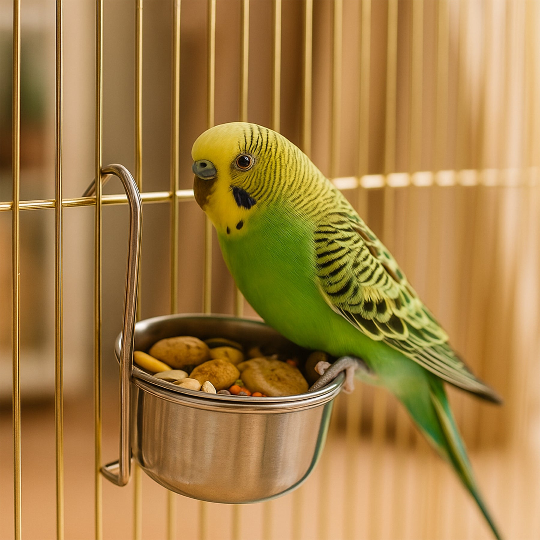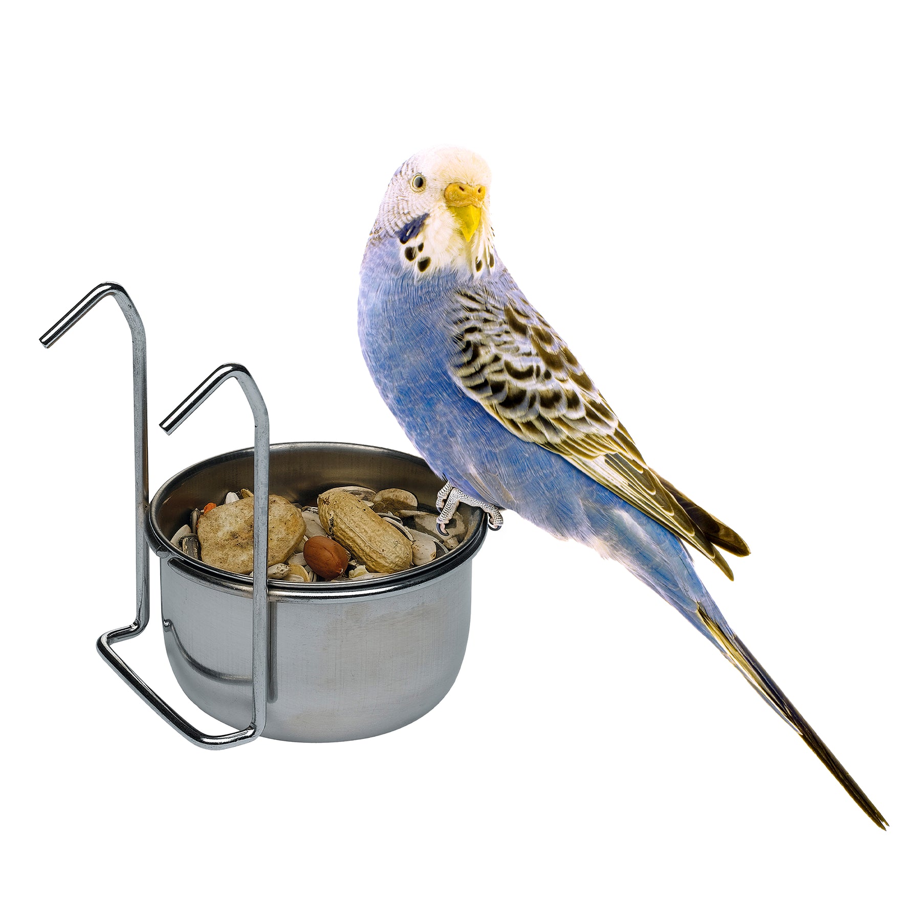 Parrot feeder, made of steel. Capacity from 0,3 to 0,8 L.