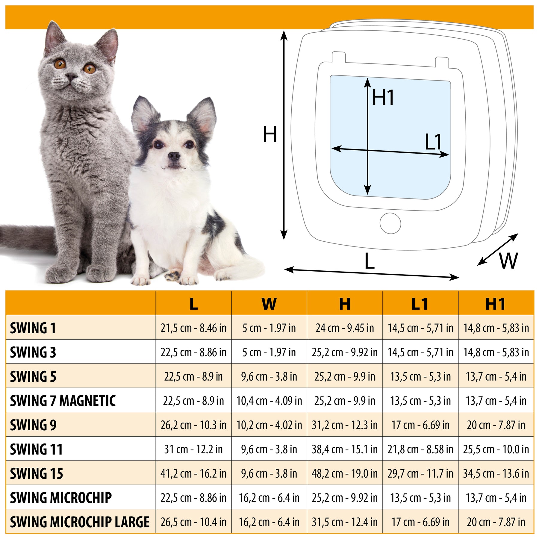 - Swing pet door for small dogs and large cats