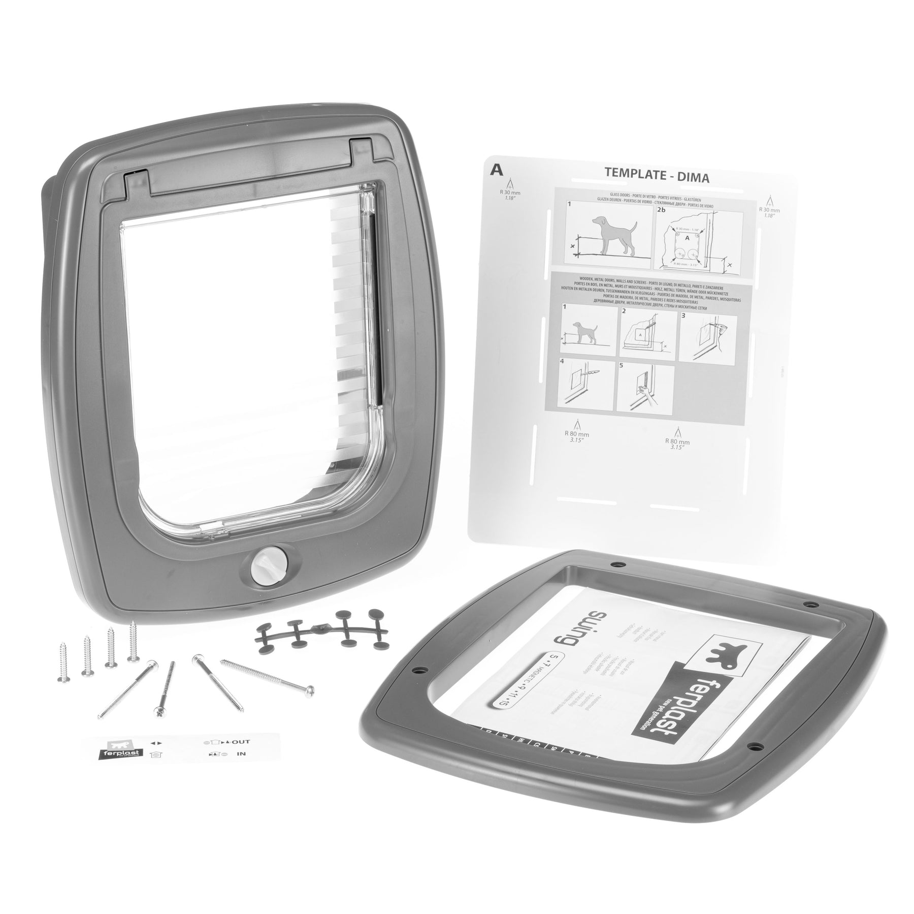 Thanks to its universal installation, Swing 9 can easily be assembled on any wood, metal or glass door and on brickwork walls. The door is solid and sturdy, made of high-quality plastic, and comes with useful technical features that make it reliable and practical to use. Its innovative protection system against drafts, Wind Stopper System, and its 4-way closure allow you to adjust the opening of the door according to need: entrance only, exit only, entrance and exit, or closed.