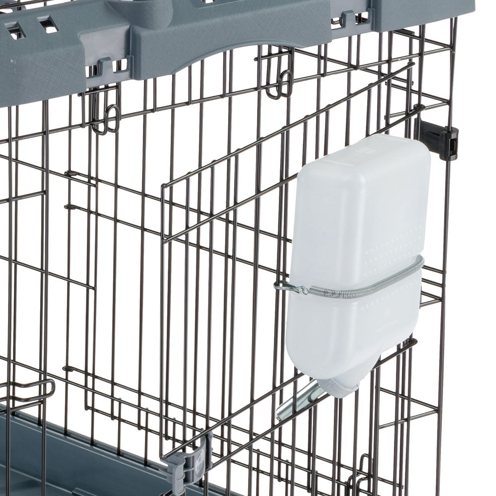 An indispensable accessory for traveling with your dog, Tirso is a practical water bottle for dogs made of non-toxic plastic, a safe and durable material, with a capacity of 1.4 litres. The drinker is easily fixed to the external mesh structure of your dog's carrier or cage, thus ensuring water is always available. It is equipped with a stainless steel spout and complete with a quick and safe spring fastening system with hooks. Tirso is a universal drinker, it can be used with all Ferplast dog carriers belonging to the Clipper range (models 4, 5, 6 and 7), Atlas Car Scenic, Atlas 40, 50, 60, 70 and 80. Also suitable for the Superior and Dog-Inn dog cages also by Ferplast.