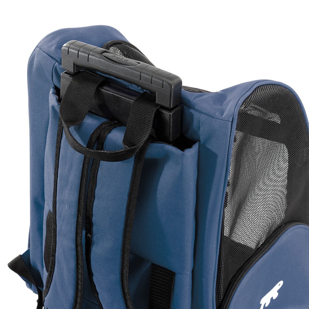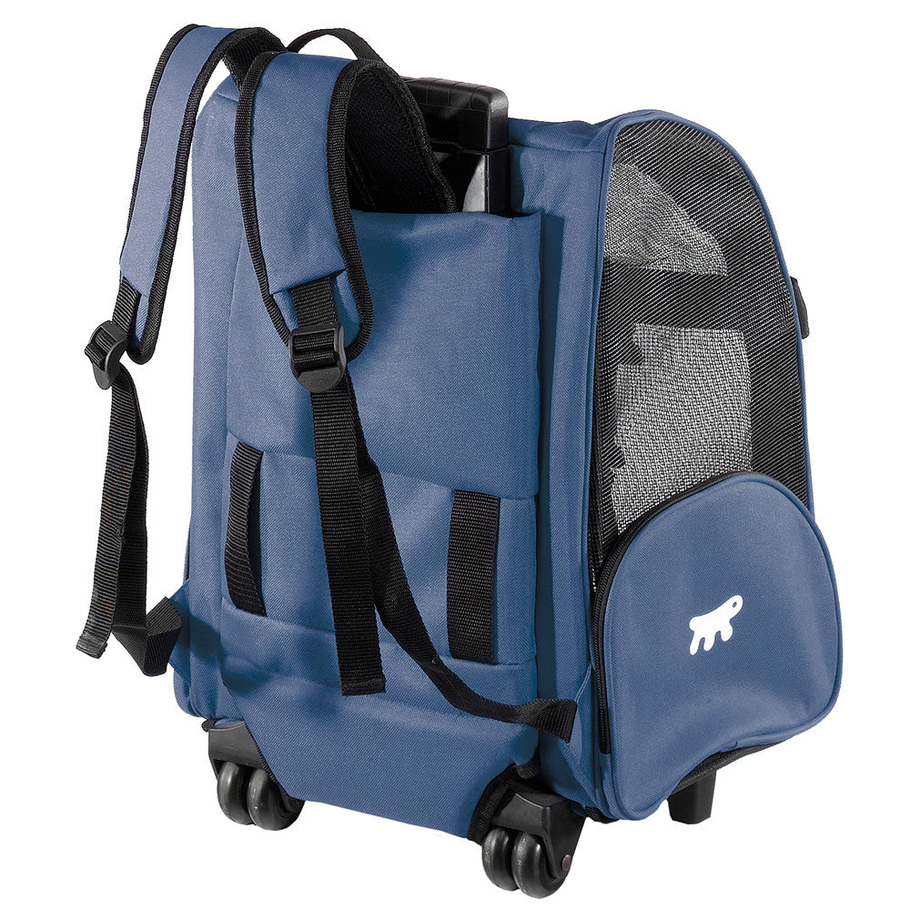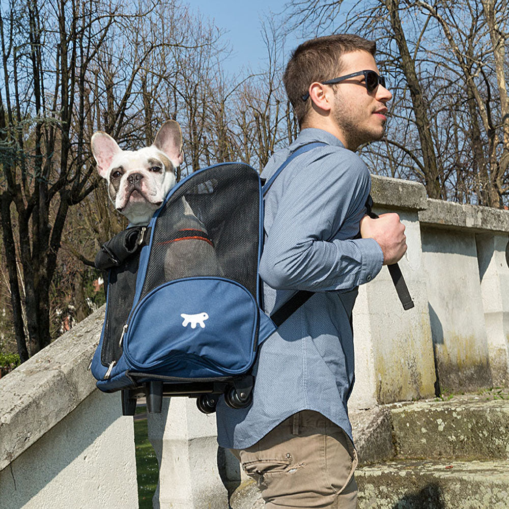 Among the accessories designed for travelling, Ferplast has come up with this practical Trolley, a rolling carrier suitable for cats and small dogs. The carrier is made of sturdy nylon and has a telescopic handle adjustable with a convenient central button. Use the back straps to wear it as a rucksack or pull it behind you like an ordinary piece of luggage. Comes with solid support feet.