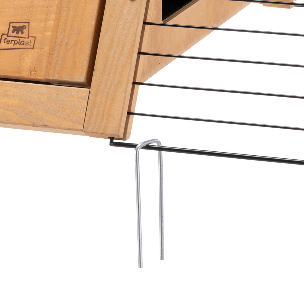 Twingloo is made of FSC™-certified wood, that is sourced from forests that are managed correctly and responsibly according to strict environmental, social and economic standards and other controlled sources. Solid and sturdy, with a recycled iron enclosure, the hutch reflects Ferplast's commitment to sustainability and animal wellbeing, providing an excellent shelter for your pet while respecting the environment.